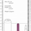 Ten mini wibrator pociskowy ma całkowitą długość 7,7 cm (3,1), 2 cm (0,8) średnicy i waży 26 gramów (0,92 uncji). Długość wkładki 4 cm (1,6).