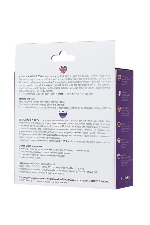 Vibrojajko A-Toys to unikalna i wszechstronna zabawka erotyczna, która wzbogaci Twoje intymne chwile dzięki przemyślanemu designowi i zaawansowanej funkcjonalności. Wykonane z medycznego silikonu i plastiku ABS, zapewnia bezpieczeństwo i luksusowy komfort użytkowania. Kompaktowy rozmiar, bezszwowe wykończenie i wygodna obsługa za pomocą przewodowego pilota sprawiają, że to niezbędny element każdej kolekcji.