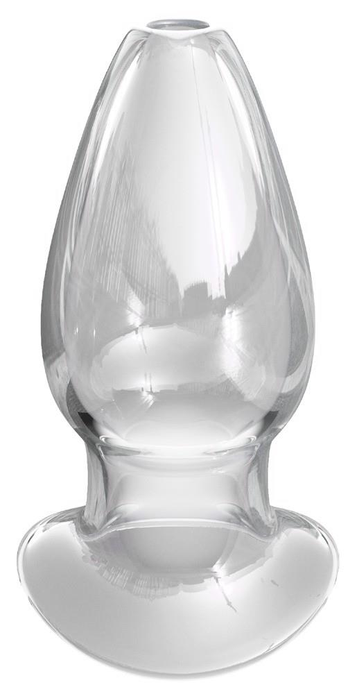 Wydrążony korek analny z zatyczką zapobiegającą zbyt głębokiej penetracji. Idealny do odświeżających lewatyw i zabaw z mini wibratorem. Ekskluzywny, przezroczysty design wykonany z borokrzemowego szkła. Możliwość napełnienia do 118 ml.