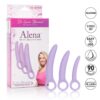 Rewitalizuje i wzmacnia mięśnie pochwy za pomocą zestawu Alena autorstwa dr Laury Berman. 3 wyjątkowo zaprojektowane rozszerzacze mają ergonomiczną krzywiznę i stopniowy rozmiar, aby umożliwić płynne rozszerzenie. Mają pierścień na palec, który zapewnia płynne wkładanie i stymulację. Zestaw stopniowany został stworzony, aby odmłodzić mięśnie pochwy i zmniejszyć dyskomfort związany z wkładaniem przy każdym użyciu.