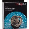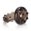 Czarny Cockring ze zintegrowanym pierscieniem na jadra. Material: TPE. Rozmiar: O elastyczne. Wolne od ftalanow zgodnie z rozporzadzeniem UE REACH.