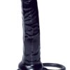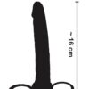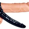 Elastyczne dildo (16 cm długości, średnica 2,5 cm) z pętlą na penisa (średnica 3 cm) i pierścieniem jąder (średnica ok. 5 cm, rozciągliwe). Materiał: TPR.