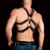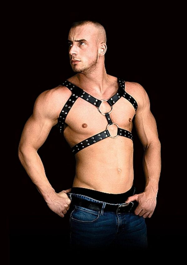 Oto następny krok w uprzężach dla mężczyzn. Dzięki niej przyciągniesz każde spojrzenie! Dwa sporych rozmiarów pierścienie połączone skórzanym pasem pozwalają na maksymalne dopasowanie do ciała! Uprząż posiada 3 klamry (2 pod pachami, 1 w okolicach brzucha), które pomogą Ci w łatwy i wygodny sposób dopasować sprzęt. Skórzane pasy przeszywane są wysokiej jakości szwami, co sprawia że wykończenie stoi na najwyższym poziomie! Nie ma nic złego w byciu skrępowanym!