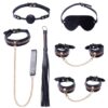 Przeznaczony zarówno dla osób początkujących, jak i dla koneserów, zapewnia różnorodne możliwości gry dzięki smyczy, kneblowi, opasce na oczy i mini floggerowi.