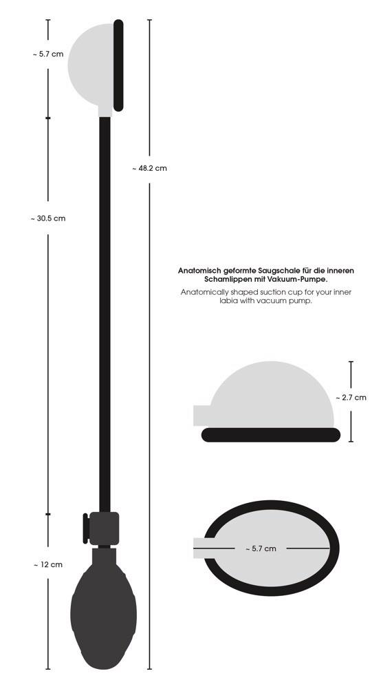 Anatomicznie ukształtowana przyssawka Pussy Sucker marki Bad Kitty do wewnętrznych warg sromowych. Przezroczystą przyssawkę umieszcza się na centrum rozkoszy, a poręczna pompka próżniowa z zaworem spustowym zostaje uruchomiona – to ekscytujący widok i silne uczucie przyjemności! Dostosowuje się do każdego sromu. Przyssawka o długości 5,2 cm i szerokości 2,7 cm (wymiary wewnętrzne). Rurka o długości 30,5 cm. Materiał: silikon, ABS.
