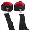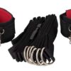 Regulowany pas do łóżka (4,5 m długości) można przymocować wokół każdej ramy łóżka. Wyściełane mankiety na nadgarstki z karabińczykami można teraz zaczepić na 6 metalowych oczkach. Dowolna odległość i pozycja. Mankiety regulowane dla niego i dla niej za pomocą rzepów. Wykonane z odpornego na rozdarcia włókna syntetycznego. Poliamid, metal. Zestaw 3-częściowy.