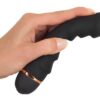 Czarny wibrator ze wskazanymi żołędziami i 5 stymulującymi falami stymulującymi na wale. Bajeczne 20 trybów wibracji można kontrolować za pomocą jednego przycisku. Długość całkowita 16,5 cm. 2,5-3,3 cm. Materiał: silikon, ABS z powłoką PU. (Prosimy zamawiać osobno baterie: 1 x AA)