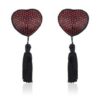 Urocze nakładki na biust w kształcie serca. Całość zdobiona jest czerwonymii diamencikami, a na środku przymocowano figlarny frędzelek. Nakładki są samoprzylepne, wielokrotnego użytku. W zestawie dwie sztuki.
