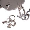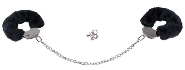 Ciężkie kajdanki marki You2Toys z długim łańcuchem łączącym i czarnymi, zdejmowanymi pluszowymi osłonami. W komplecie dwa klucze – ale można też otworzyć samą szeklą. Wewnętrzna średnica 7,4 cm (zmienna), łańcuch łączący o długości 44 cm. Waga 261 g.