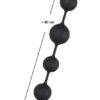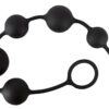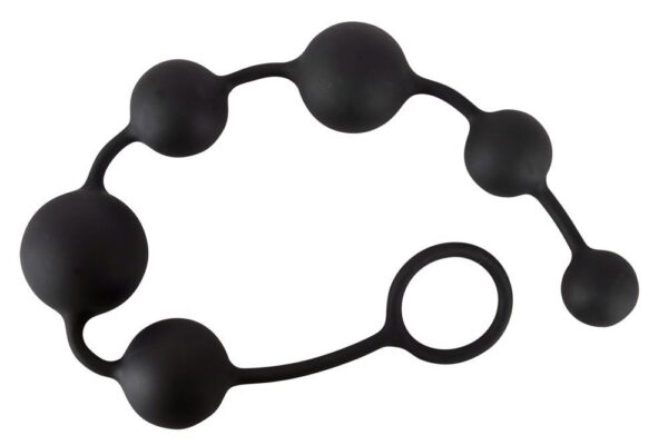 Czarny łańcuch kulkowy z sześcioma kulkami o różnej średnicy (2,3-3,9 cm). Łatwo się rozciągnąć. Z pierścieniem zwrotnym. Długość całkowita ok. 40 cm. Materiał: silikon.