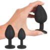 3 x korek analny w różnych rozmiarach dla idealnego treningu rozciągania i każdy z kamieniem szlachetnym u podstawy dla ekscytującego wyglądu w zapleczu. Wymiary:
