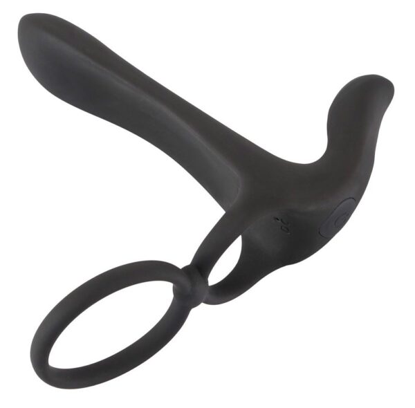 Couple’s Vibrator marki Black Velvets to pierścień na penisa/jądra z wibratorem i wibro stymulatorem łechtaczki. Pierścień na penisa i jądra są złożone tak, że wibrator zagnieżdża się na górze penisa. Dzięki temu on może sprawić jej przyjemność grubszym penisem podczas seksu, a sam czuje rozkoszną ciasnotę. I oboje czują wibracje. Dodatkowo pierścień na penisa podtrzymuje jego erekcję przez długi czas dzięki efektowi zastoju krwi, pierścień na jądra zapewnia pewny i bezpieczny chwyt, a stymulator łechtaczki o strukturze pobudzającej pieści jej gorący punkt bezpośrednio mrowiącymi wibracjami. 2 silniki zapewniają 20 zróżnicowanych trybów wibracji, które można wygodnie kontrolować bezpośrednio na zabawce za pomocą jednego przycisku. Nawet w/pod wodą, ponieważ Para Vibrator jest wodoodporny! Wysokiej jakości materiał silikonowy o fakturze soft touch zapewnia bardzo przyjemne uczucie na skórze obojga partnerów. Możliwość ładowania – w zestawie kabel USB do ładowania.
