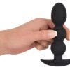 Idealny do gier na rozciąganie odbytu: Korek kulowy z szeroką, bezpieczną podstawą kotwiczącą. Długość całkowita 13,3 cm, średnica 1,7 do 3,2 cm. Czarny. Silikon z powłoką PU (miękki dotyk).