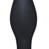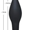 Czarny korek analny z wąską końcówką i poszerzonym wałem. Jedwabiście gładka powierzchnia dla gładkiej stymulacji. Ze stoiskiem. Długość ok. 12 cm, głębokość wsunięcia 10,5 cm, średnica ok. 4 cm. Materiał: silikon.