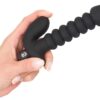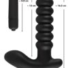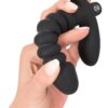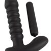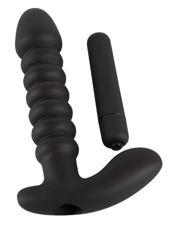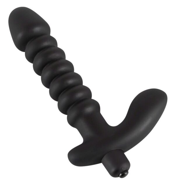 Silnie żłobkowany wibrator z kotwicą stymulacji do stymulacji łechtaczki i krocza. Czarny. Długość całkowita 17 cm, średnica max. 3,1 cm. Materiał: silikon, ABS z powłoką poliuretanową (pocisk). (Prosimy zamawiać osobno baterie: 1 x Micro/AAA)
