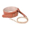 This stylish collar & leash set from the Blaze Elite label has nickel free metal details that complete the classy look. It is easy to adjust the size of the collar with the buckle for the perfect fit. The chain leash with attached wrist loop can easily be connected or disconnected with the clip. It’s a visually appealing element that adds functionality. The dom can control the sub with it and you can easily remove the chain. Connect additional chains, rope hooks, or even add extra weights to enhance your experience and explore new levels of pleasure.Collar and Leash Set made of artificial leatherAdjustable with buckleWith metal chain and clipMetal details are nickle-freeWarm cognac-coloured BDSM gear made of artificial leather exudes a unique and alluring charm. The rich hue of cognac adds an element of sophistication and elegance, while the use of artificial leather ensures a cruelty-free and ethical alternative. This combination creates a visually striking aesthetic that can enhance the confidence and self-expression of those who choose to embrace this style. These Blaze items can be a powerful symbol of empowerment and individuality.