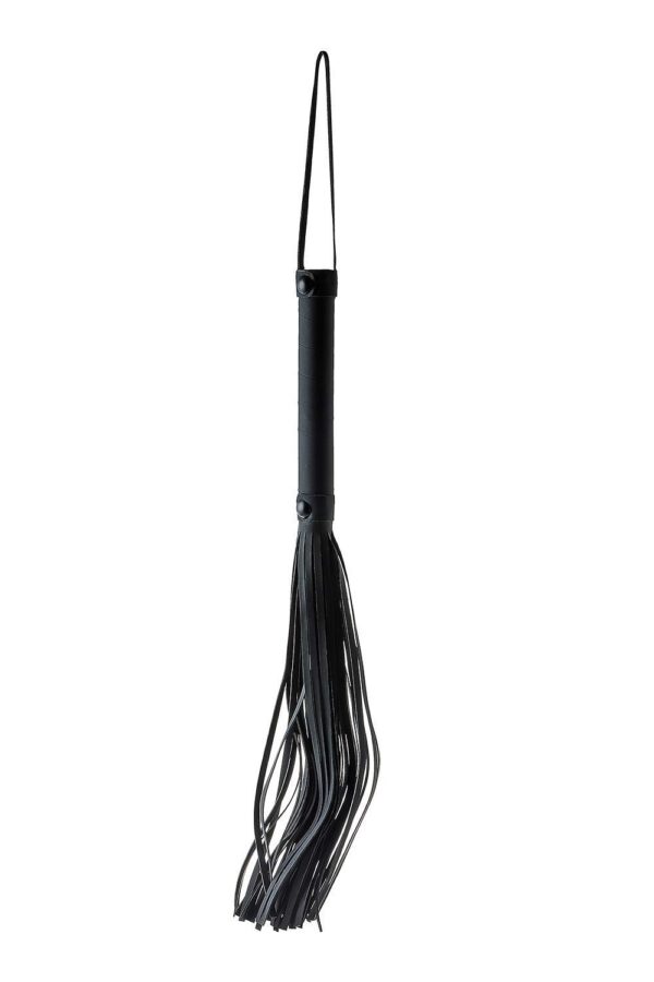 Czarny flogger ze skórzanymi paskami. Mocny i wytrzymały uchwyt. Zaprojektowany, aby zaspokoić najbardziej erotyczne pragnienia. Delikatnie prześlizguj się po ciele kochanków, aby budować napięcie.