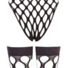 Ciało i pończochy Rio w komplecie. Całość wykonana z czarnej, elastycznej, miękkiej, grubej siatki, bez szwów. Pończochy z antypoślizgowym wzmocnieniem silikonowym u góry. 90% poliamid, 10% elastan.