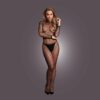 Dopasowany bodystocking z siateczki z długimi rękawami, golfem i otwartym krokiem. Odkryte plecy dodają mu dodatkowej zmysłowości. Miękki, wyjątkowo elastyczny materiał idealnie pasuje na rozmiary od XS do XL, zapewniając komfort i uwodzicielski wygląd.