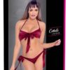 Miękki biustonosz i majtki Cottelli LINGERIE wykonane z miękkiego jedwabistego elastycznego materiału. Biustonosz z halterneckiem do zawiązywania i wiązania na kokardkę między miseczkami. Majtki z wiązanymi kokardkami po bokach.
