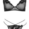 Biustonosz i riostring marki Cottelli LINGERIE z elastycznego powernetu z cennymi haftami na miseczkach i z przodu na sznurku oraz z detalami w postaci pierścieni w kolorze złota. Biustonosz z regulowanymi ramiączkami i zapięciem na haftki z tyłu. Stringi Rio z podwójnym elastycznym paskiem w talii.