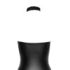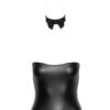 Bez ramiączek, elastyczne body w kształcie tuby o szlachetnym matowym wyglądzie. Małe zapięcie na rzep na dole do przyczepienia pierzastego puchatego ogona. Opaska na szyję ze stylowym wiązaniem na kokardę z przodu, zapięcie na rzep z tyłu. Mankiety na ręce z 2 guzikami każdy. Uszy na opasce można złożyć.