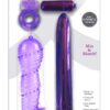 Ten 4-częściowy zestaw zabawek przekonuje wszechstronnymi możliwościami zastosowania. Wibrator posiada bezstopniową, wielostopniową wibrację, która stymuluje z odpowiednią częstotliwością. Rękaw ma przyjemną strukturę, która dodatkowo stymuluje i posiada otwór na dołączony wibrobullet. Rękaw zapewnia dłuższą i twardszą erekcję, a wibrobullet stymuluje łechtaczkę podczas penetracji. Penis Ring posiada również otwór na dołączony Vibrobullet, Penis Ring wpływa również pozytywnie na długość i twardość erekcji, zapewniając przy tym bardziej realne odczucia. Baterie w zestawie: 3 x LR44. Baterie prosimy zamawiać osobno: 2 x AAA.