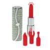 W zestawie znajduje się efektowne etui, ozdobny łańcuszek oraz dwie wymienne silikonowe końcówki, które pozwalają dopasować rodzaj stymulacji do indywidualnych preferencji.