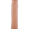 Pokaźne dildo w kolorze cielistym. Do złudzenia przypomina prawdziwy męski członek. Wyraźnie zaznaczona główka, wyraźne żyłki i zgrubienia u podstawy