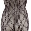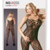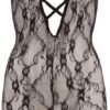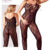Kombinezon z miękkiej koronki z efektem miękkości z głębokim dekoltem z elastycznej taśmy w optyce koronki. Ekscytująco otwarte w kroku! Ze stopą.