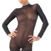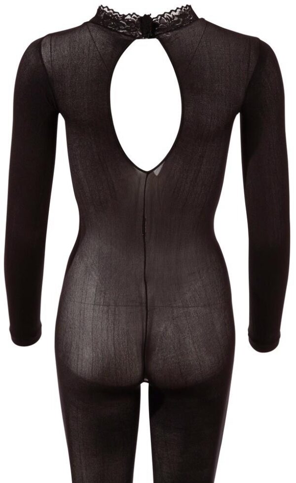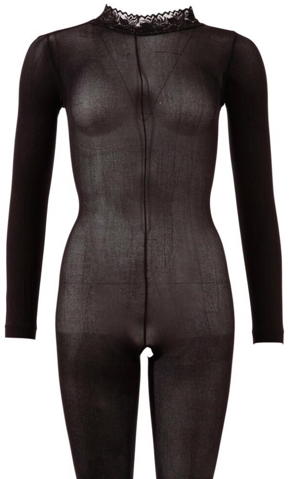 Pełna przejrzystość ciała z zapraszającym otwartym kroczem. Koronkowy kołnierz z zatrzaskami. Cudownie miękka jakość – prawie niewyczuwalna na skórze! Ze stopą.