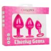 Open yourself up to the fabulously frisky world of backdoor pleasure with the Cheeky Gems. The glamorous anal training kit includes a set of 3 graduated anal plugs with a gem base to let you safely and comfortably increase passionate anal stimulation. The view gets even better from behind with the sparkling oversized gem base.