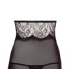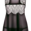 The seductive chemise stands out from the rest because of its fancy details. The skirt part is made out of black powernet and the large insert of eyelash lace for the top part adds a beautiful classy touch to the lingerie. There is also a powernet insert in the cleavage area that adds to the classy effect. The delicate transparent lace emphasises your beautiful breasts as well – what a sight! However, the back of the chemise is very impressive too because there is a small halterneck that ties at the back of the neck and a lace insert around the lower back.