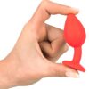 Dzięki swojej 7,2 cm długości i średnicy od 0,9 do 2,7 cm, wtyczka nie należy do największych, ale wyraźnie należy do najpiękniejszych tego typu urządzeń. Bo kto mówi, że wtyczki zawsze muszą być czarne? Ten jest intensywnie czerwony z akrylowym kamieniem szlachetnym o tej samej barwie. Rozprzestrzenia skandalicznie dobry nastrój, sprawia, że tyłek staje się prawdziwym kawałkiem biżuterii, a także spełnia wszystkie inne wymagania, które ma wtyczka! Silikon z powłoką PU, akrylowy.