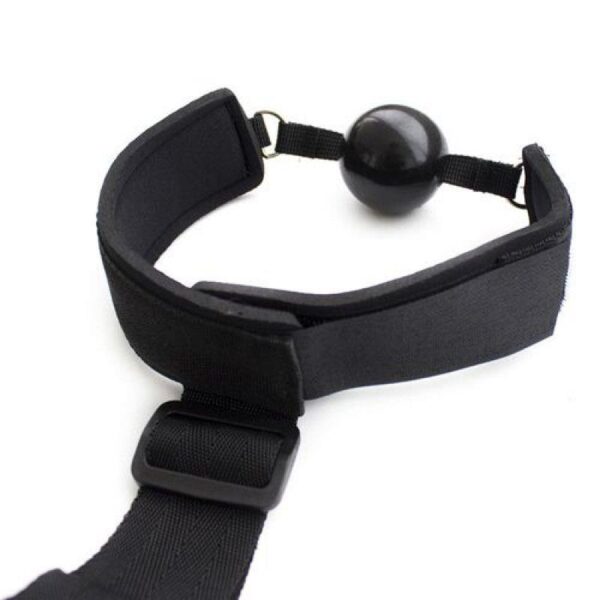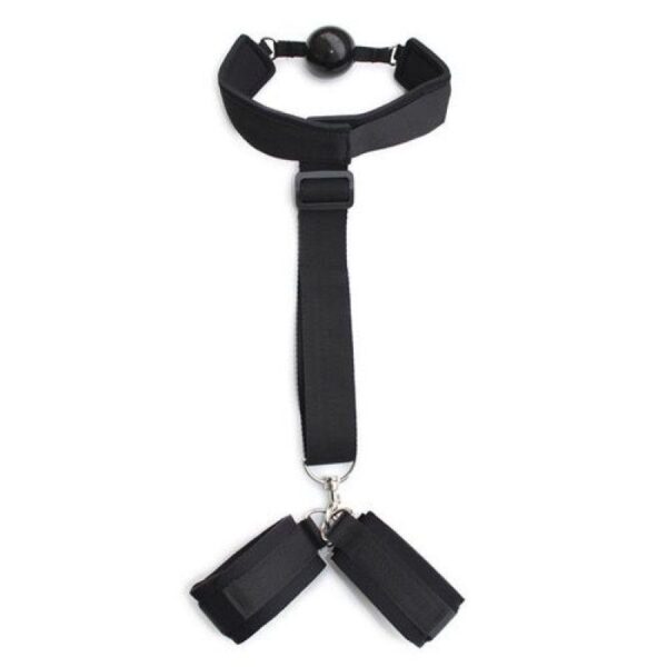 To zwężający się zestaw złożony z opasek połączonych z ugryzieniem piłki, który zmusza cię do milczenia. Będziesz posłuszny bez poruszania kończynami górnymi, utkniesz za plecami, pozostając na łasce twojego władcy. Stworzony do ciężkiej gry i zarezerwowany szczególnie dla tych, którzy ścigają emocje niespokojnej przyjemności.