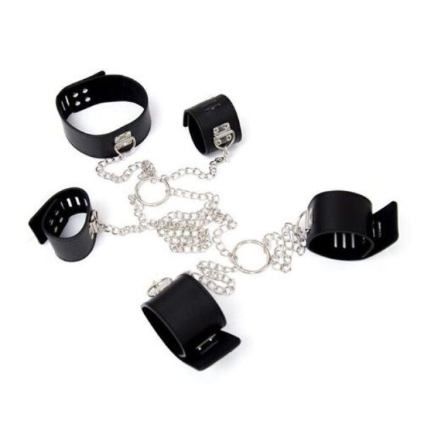 Ściągacz wykonany z imitacji skóry i łańcuszków, składający się z kołnierza, opasek na rękę i kostek, które mogą blokować całe ciało. Obiekt ograniczenia bdsm, który pozwoli Ci zrealizować fantazje o dominacji, nawet te najbardziej nieuznane. Dzięki Fetish Art nie masz budżetu, który możesz zachować, możesz zaspokoić swoje najskrytsze pragnienia.