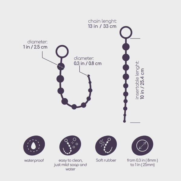 To kompletny, trójelementowy rytuał przyjemności: praktyczna analna gruszka, lubrykant o właściwościach relaksujących oraz łańcuszek analny z 10 perełkami dla maksymalnej, stopniowanej stymulacji.