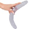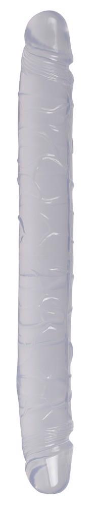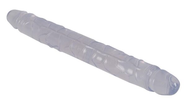 Kryształowe podwójne dildo Crystal Clear z charakterystycznymi żyłkami i wypukłą żołędzią na każdym końcu. Do jednoczesnej stymulacji pochwy i odbytu – lub lubieżnej zabawy dla dwojga.