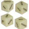 Rzuć się w ekstazę! Ekscytujące noce są gwarantowane. Z tymi kostkami, które świecą w ciemności, przyprawiasz o zawrót głowy swoje życie miłosne. Jedna kostka oznacza część ciała, która ma być rozpieszczana, druga – odpowiednie działanie. Ciesz się ekscytującą grą wstępną… 2 kostki: Terminy w języku angielskim.
