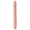 Podwójne dildo. Realistyczna, wyraźnie zaznaczona głowa na obu końcach oraz żyłki wzdłuż wału. Wyjątkowo elastyczny.