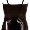 Ściśle przylegająca mini sukienka w błyszczącym, mokrym stylu z prowokacyjnym, przyciągającym wzrok, sznurowanym dekoltem. Regulowane paski. Czarny. 92% poliester, 8% spandex.