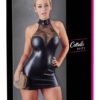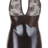 Ta czarna krótka sukienka marki Cottelli PARTY łączy w sobie błyszczący wet look z delikatnymi koronkowymi wstawkami przy dekolcie i na plecach. Doskonale przylega do ciała i prezentuje kobiece krągłości w zapierający dech w piersiach, seksowny sposób! Stójka z 2 guzikami przy szyi.