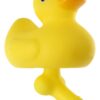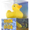 Classic yellow bath duck with a hidden menace lurking below the water line. Presented in an display box.