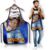 Nadruk przedstawia umięśnione męskie ciało w jeansach z napisem „Ciacho”, co nadaje fartuszkowi zabawny i atrakcyjny wygląd.