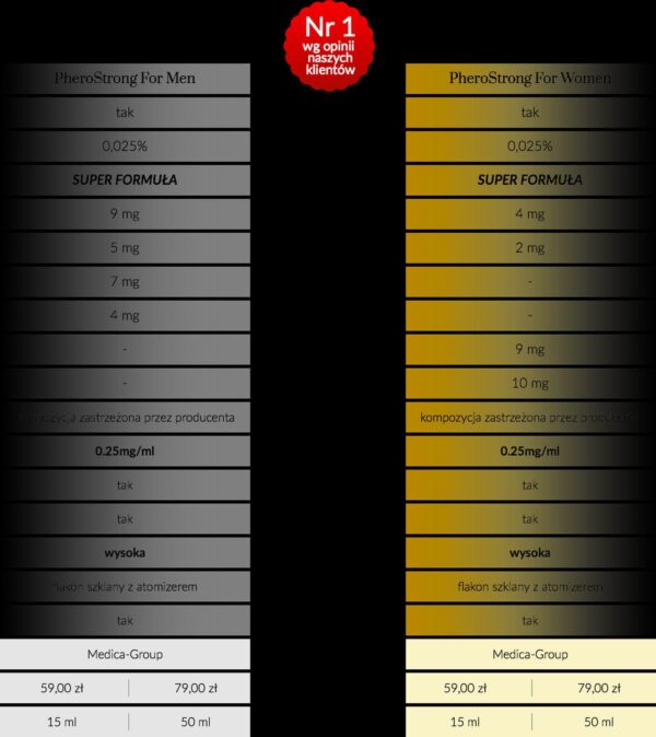 Wyniki badań przeprowadzonych nad feromonami sugerują, że możemy kontrolować naszą seksualność i zachowania z nią związane. Feromony PheroStrong pomogą zwiększyć Twoje powodzenie u płci przeciwnej. Pozwolą Ci przełamać barierę nieśmiałości i zwiększa szansę na flirt. Pomogą Ci być osobą otwartą, pewną siebie i towarzyską. Wzbudzaj zainteresowanie – dzięki PheroStrong możesz magnetyzować swoja całą osobą.