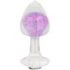 Jego wyjątkową ozdobą jest fioletowa szklana kula, stanowiąca centralny element, a całość dopełnia stożkowa końcówka ułatwiająca wprowadzenie oraz kwiatowa podstawa, łącząca estetykę z bezpieczeństwem i komfortem.