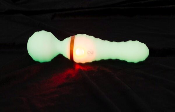 The exciting Glow in the dark Wand from You2Toys has a fluorescent Soft Touch texture that glows in the dark for a long time. It can even be used under water. The waterproof, silicone massager just needs to be exposed to some light e.g. a lamp.
