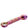 Ten dildo jest wykonany ze szkła borokrzemianowego, które jest bardzo mocne, nieporowate, higieniczne i bezpieczne dla ciała. Dildo ma kolory bańki mydlanej, co nadaje mu efektowny wygląd. Przemyślana konstrukcja obejmuje zakrzywioną końcówkę, która jest idealna do łatwego dosięgnięcia punktu G lub punktu P. Wypustki na cholewce dodają dodatkowej stymulacji. Dla ułatwienia obsługi posiada u podstawy pierścień do ciągnięcia.