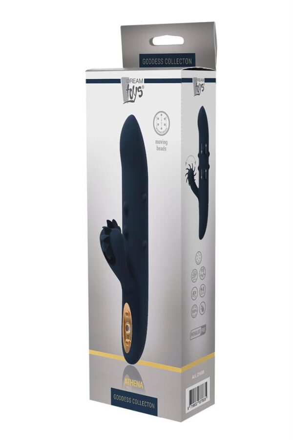 Ten wodoodporny wibrator dla królików jest wykonany z bezpiecznego dla ciała „płynnego” silikonu, dzięki czemu jest bardzo miękki w dotyku. To wydaje się prawdziwe. Stymulator łechtaczki nie jest zwykłym królikiem, lecz obracającym się kołem z małymi językami naśladującymi lizanie. 2 mocne silniki oferują 3 poziomy stałej wibracji i 7 różnych rytmów. Kolejną specjalną cechą Ateny jest funkcja ruchomych koralików. W wale znajdują się koraliki, które podążają za ruchami wibracji.