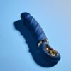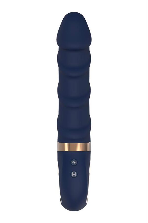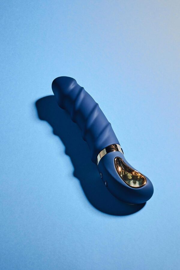 Fully in style with the other Goddess Collection toys, Belenos is made of dark blue silicone with gold coloured details. The classic vibrator has a ring shaped handle with metal coating that makes it easy to grip and look luxurious. Made of Liquid Silicone, this vibrator is velvety soft to the touch. Belenos has a soft tip and a flexible, curved shaft that is perfect for G-spot stimulation with stimulating ridges winding around it. With its powerful motor this vibrator is sure to deliver strong vibrations and with 7 vibration rhythms and 3 speeds there’s a perfect vibration for every taste. To make things even more pleasant, Belenos has a heating function, so the shaft will feel nice and warm like body temperature. It’s 100% waterproof so this vibrator can be used in the shower or bath tub. A magnetic USB-cable for recharging is included. Charging duration 3 hours. Usage duration 60 minutes at the highest speed or 120 minutes at the lowest speed. Body safe, free of phthalates and latex. Ribbed vibratorFlexible, curved shaftSoft tipMade of Liquid SiliconeWith metal coated ring gripPowerful motor7 Vibrations rhythms, 3 speedsHeating / warming functionIPX7 WaterproofRechargeableMagnetic USB-cable includedLength 23 cmDiameter 4 cmClick here to download the manual